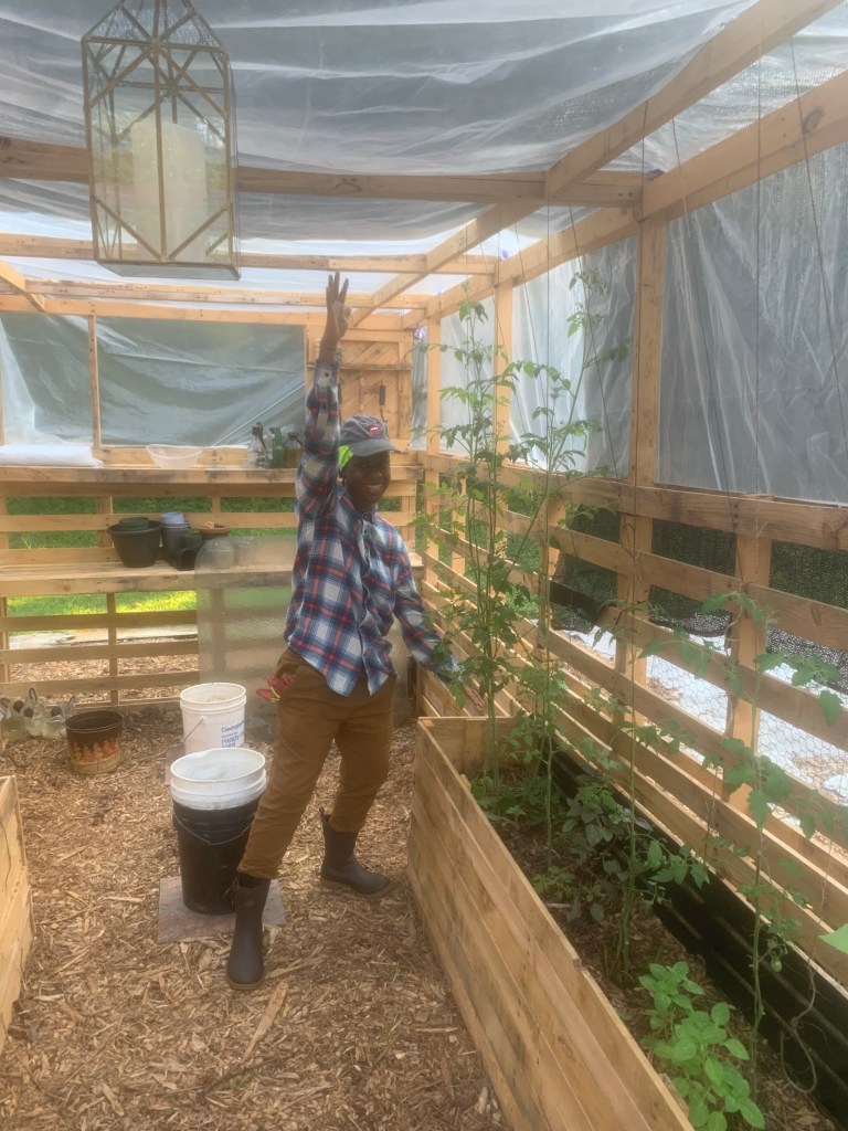 Our sweet potato plants are now climbing all over the greenhouse! It looks even better than I imagined. Not only do sweet potatoes look beautiful growing vertically, but it makes it a lot easier to harvest the greens. Yum!