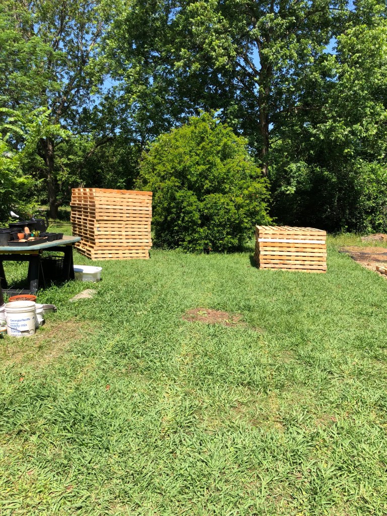 A few months ago, we rented a uHaul and set out on a rescue mission. We had learned that there were hundreds of heat-treated, wood pallets intended for THE DUMP. Nope – not on our watch! I had no idea what we’d do with all those pallets, but with so many projects needing to be done on the land, I was sure they’d come in handy.