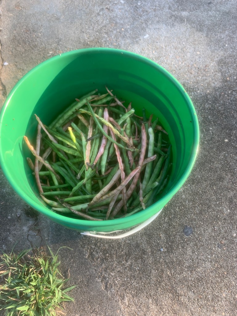 Despite being known as heat-loving, the purple hull peas didn’t do too well and only produced a few edible pods. There’s still time before our first frost, so I’m hopeful that the plants will rebound. Those southern favorite, black-eyed peas, though – I’ve gotten BUCKETS of peas from those plants!
