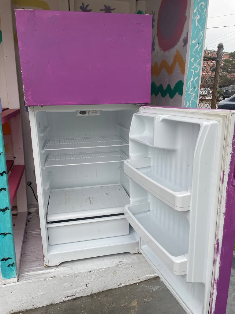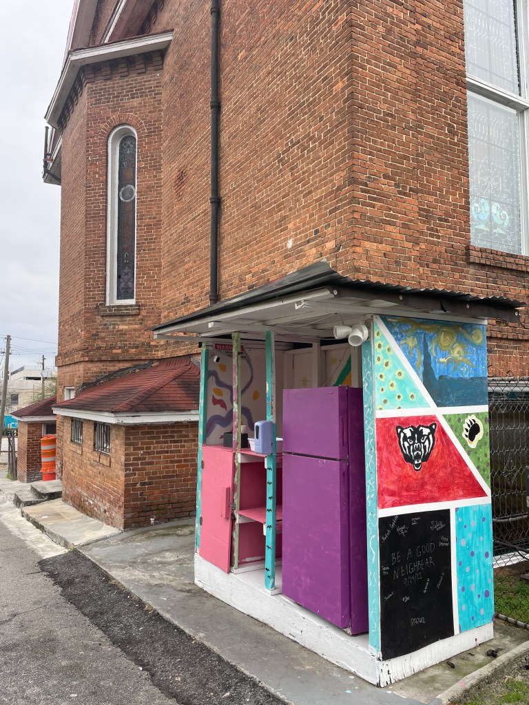 I’d previously arranged with event organizers to take leftover boxed lunches to share with our neighbors in-need via the Macon Community Fridge. The conference had a record number of attendants (260 people), so there were fewer leftovers than anticipated (I rescued a car FULL of leftovers at last year’s Fall conference for the ATL Free Fridge). I pushed down feelings of “it’s never enough”, wiped out the fridge, and left it better than I’d found it. I expect that the fridge was empty again before I reached the interstate, but am certain there were a few more happy bellies in Macon.