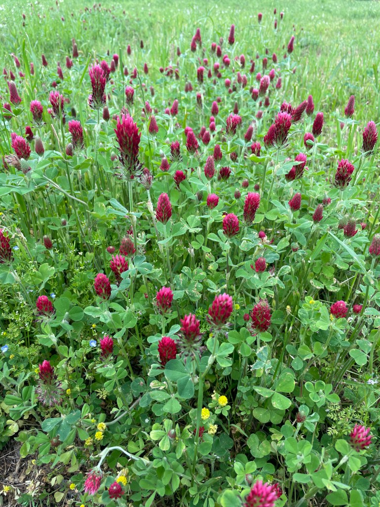 Lawns cover 40 million acres, or 2%, of land in the U.S., making them the single largest irrigated crop we grow. Our friendly neighbor offered to cut our grass too – since we obviously aren’t keeping it cut. LOL! That’s no accident. On each lot, we have areas designated for re-wilding native species. We do not cut the grass in those areas and allow nature to do its thing. I was so excited to discover Red Crimson Clover growing on one of the lots! This bright “weed” is not just beautiful. It’s also beneficial to the ecosystem. If we constantly cut our grass low, we would’ve blocked our blessings.