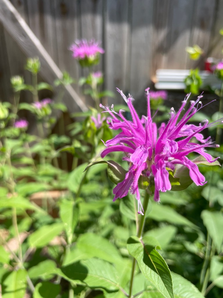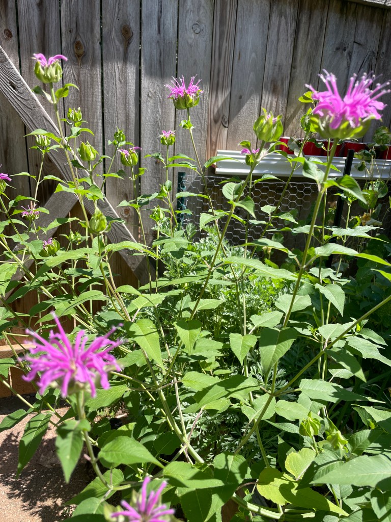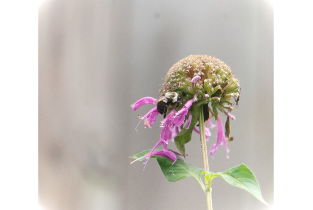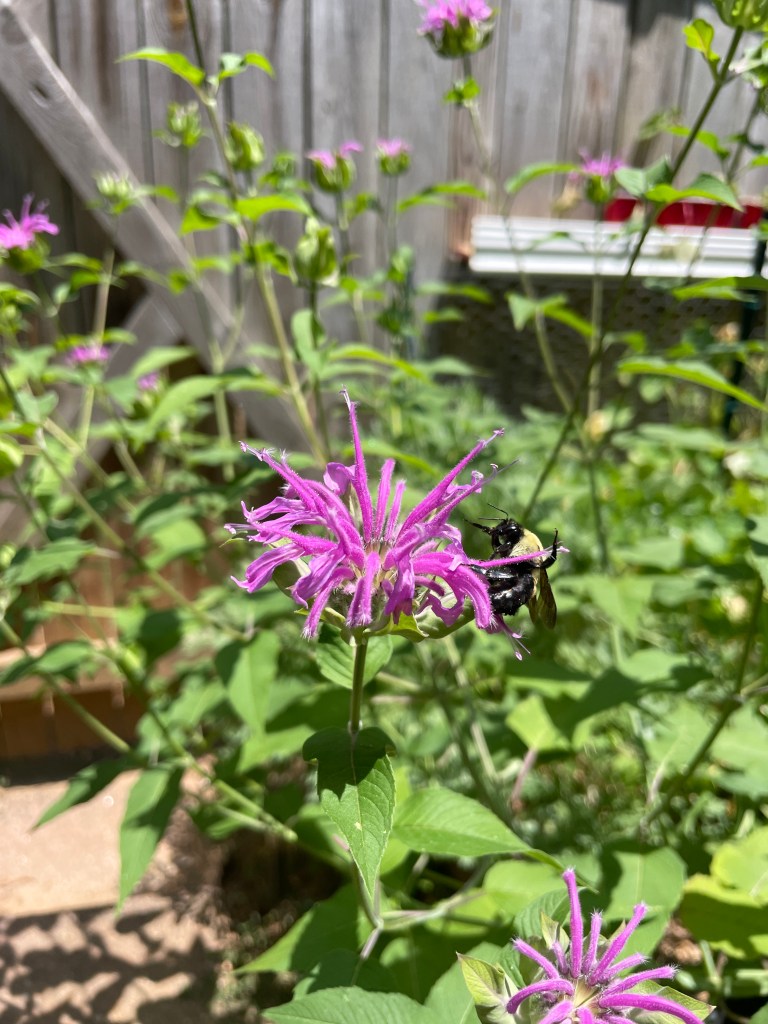 I couldn’t believe my eyes once the patch started blooming – 3 feet tall, striking purple clusters. It was one of the funkiest flowers I’ve ever seen in real life! Very quickly, it became clear why this plant is also called “bee balm”. The number of bees that ascended onto this patch and feverishly flew from flower to flower from sunrise to sunset…WOW. It was unlike anything I’ve experienced. I was fortunate to capture a little bumble bee action in the video below.
