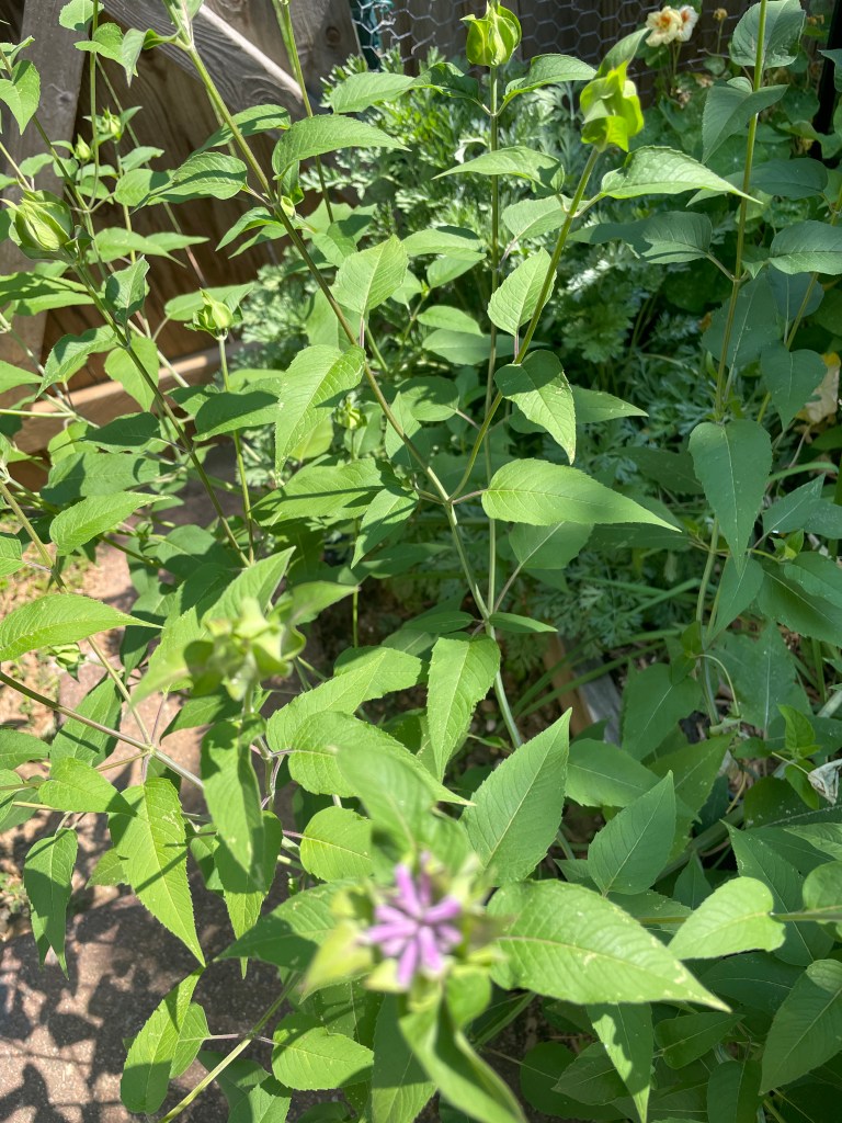 Hummingbirds have been spotted feasting on the new flower patch too. Many of the flowers are mostly spent now, but I can’t bring myself to cut the patch down yet because the pollinators are still active. Once the winged crew seems to be done with them, I’ll chop the plant to preserve the leaves for cooking and harvest the seeds for cultivation. No doubt, I need to help carry on this wild plant genetics by intentionally planting more of it.