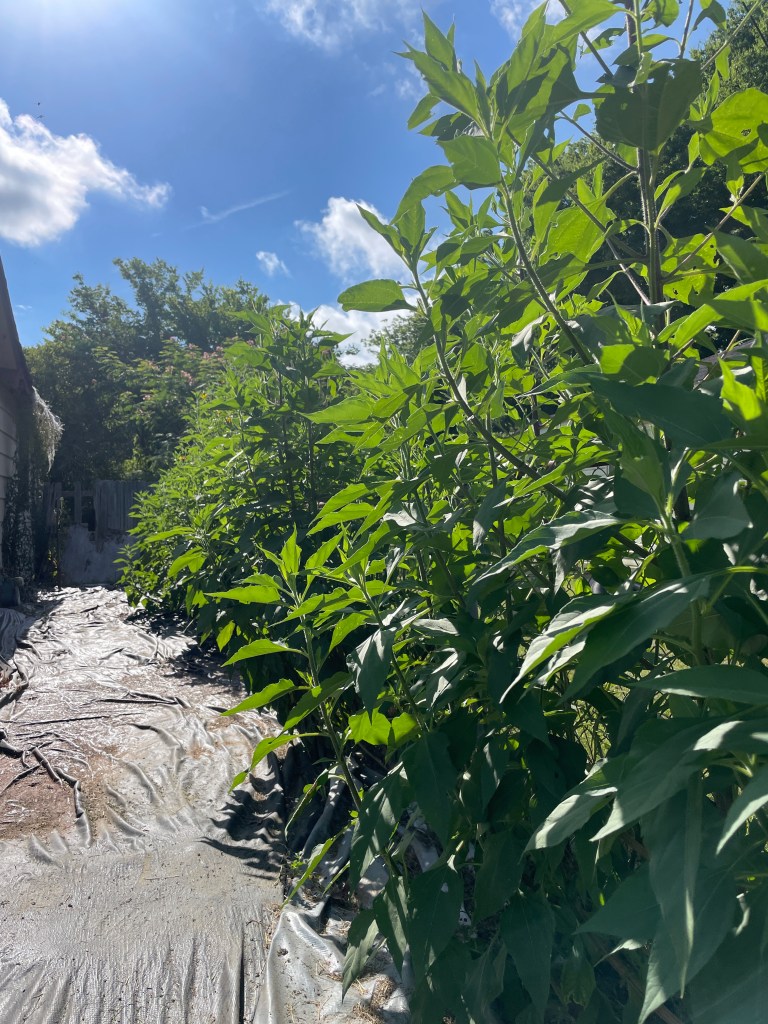 That farm lot is a whole new experience now. I was working over there the other day and didn’t have my neighbors sitting on the porch watching me. What a difference a stunning plant makes! Now, my neighbors will enjoy the entertainment of watching the wild sunflowers sway in the wind or following the pollinators as they buzz from petal to petal. I’ve yet to have the pleasure of harvesting their delicious and nutritious root crop, but I know I’ll continue growing sunchokes for the added privacy screen benefit alone. They are a KEEPER and will, for sure, be expanded next year!