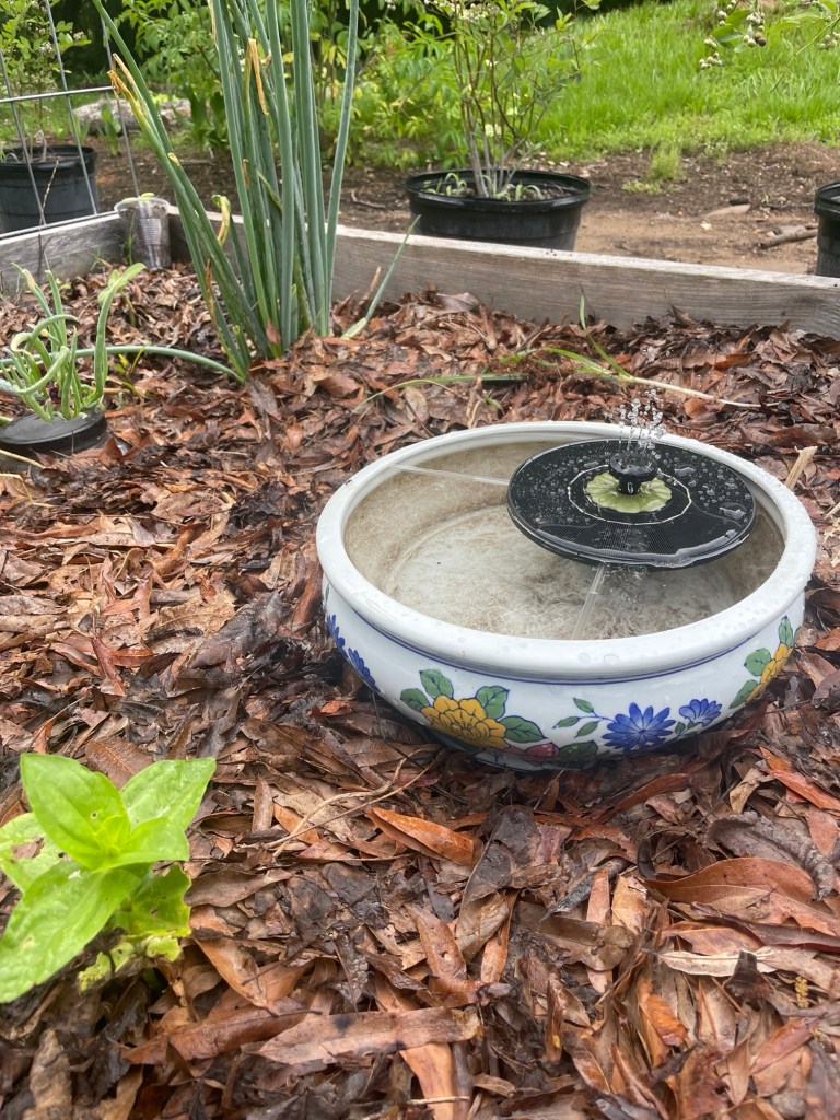 One of the improvements I committed to making this year was providing water sources for the birds and bees on the farm.