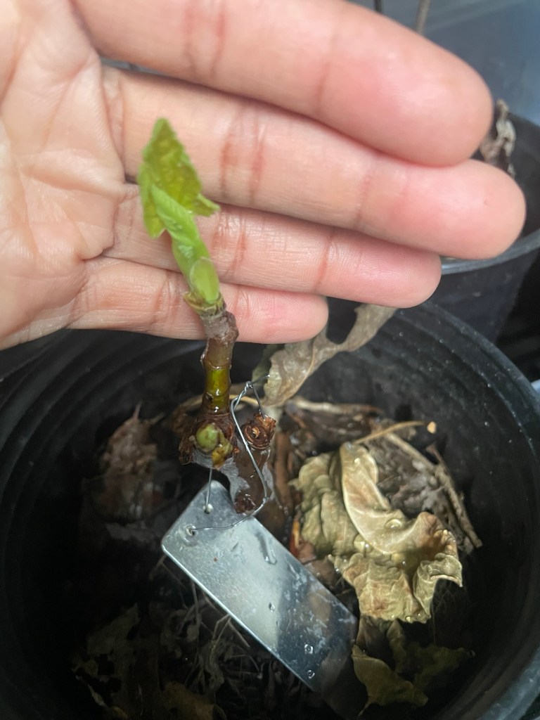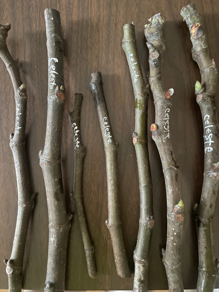 This Winter, my seed fridge has been housing my collection of fig cuttings from last year’s prunings. I had planned to start trying to root them at the end of this month, but made a change to that plan after discovering buds and new growth on my little rooted fig trees at the end of January.